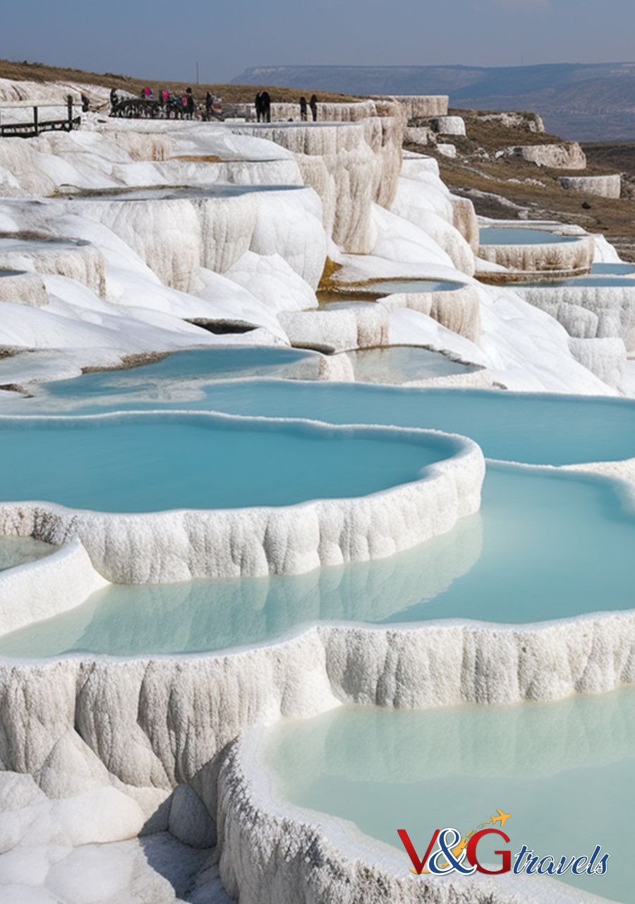 Visita all’antica Hierapolis, ricostruita dopo il terremoto del 17 d.C., e a Pamukkale, con le sue vasche naturali formate dal millenario scorrere dell’acqua calcarea; qui sembra che il tempo si sia fermato e che le cascate di una gigantesca fontana siano pietrificate come suggerisce il nome del luogo che tradotto in italiano significa “fortezza di cotone”.