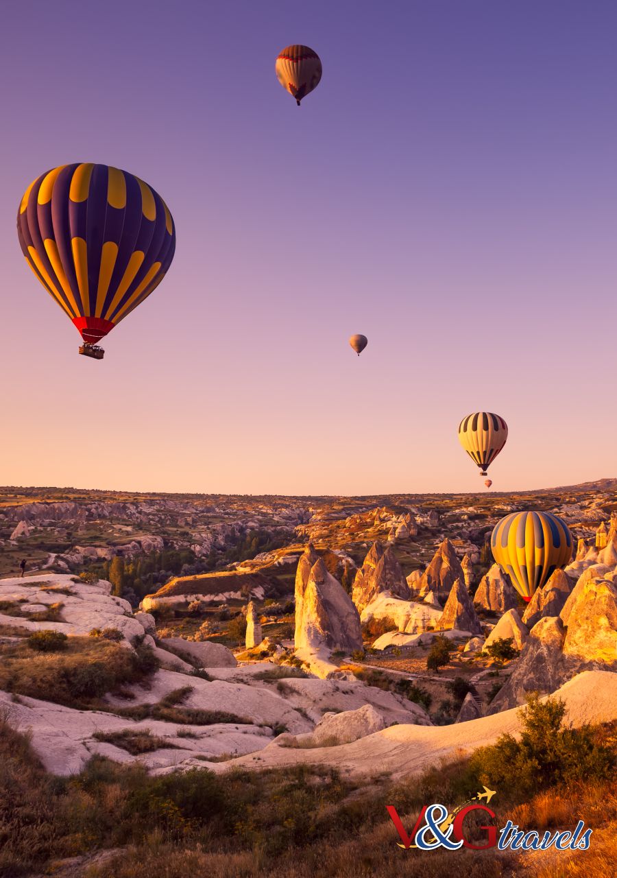 In Cappadocia, sorvola il paesaggio unico in mongolfiera, lasciandoti incantare dai villaggi scavati nella roccia.
